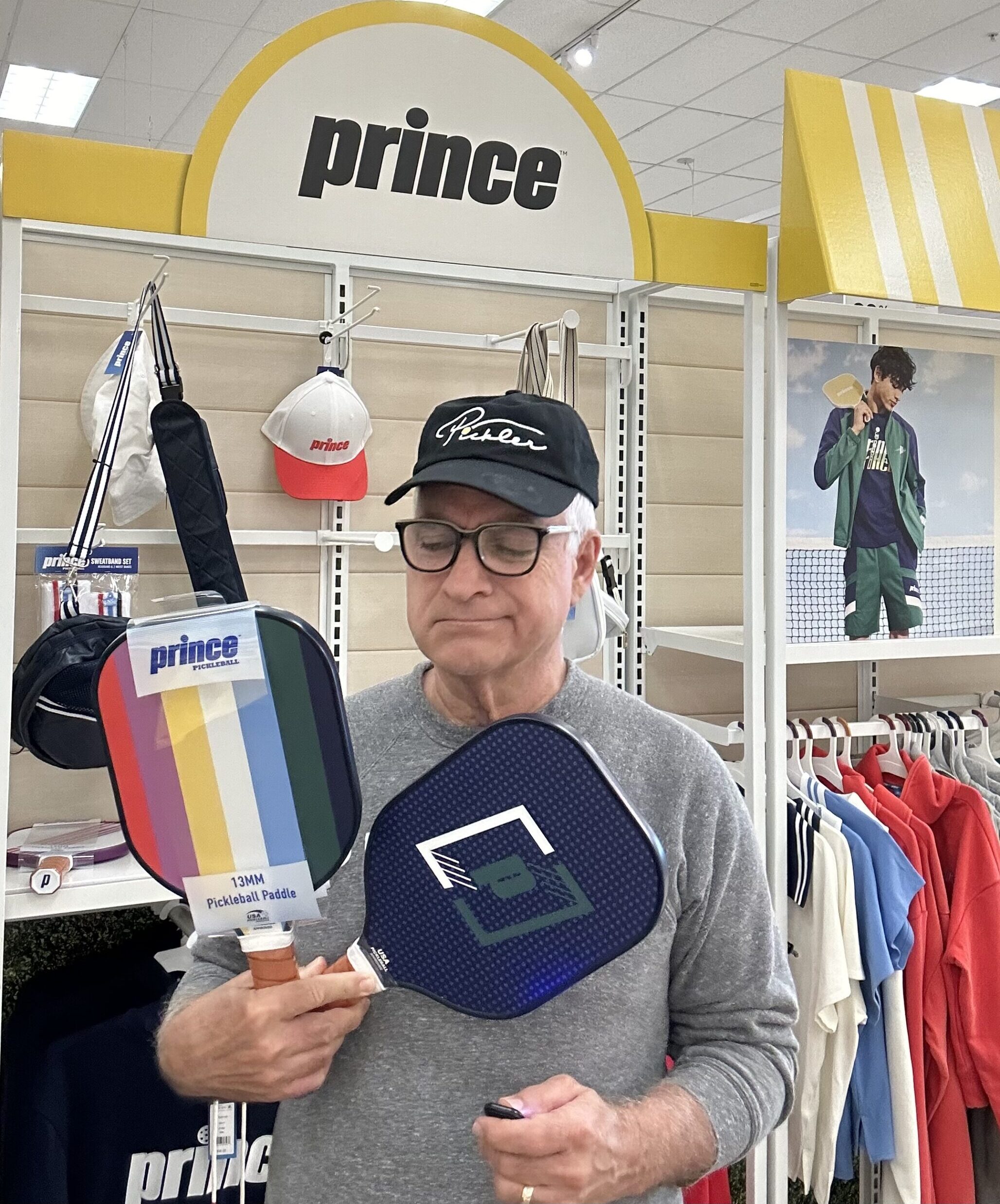 It’s in the part of the store where you expect to find something like adult-sized plush stuffed bears and enormous plastic jugs of cheese puffs. But now there is a walk-in display nook of pickleball apparel, gear and accessories from Prince, the Georgia-based sporting goods manufacturer.