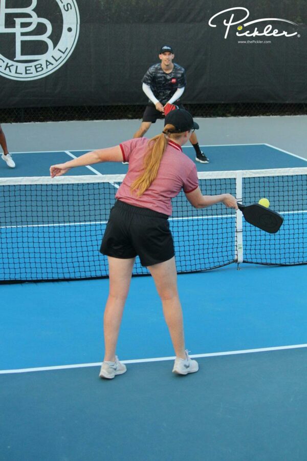 The wind will cause the pickleball to move and dance. So, it is important to be very deliberate in your shots when the wind is blowing in order to cut through the wind. Oftentimes, pickleball players will have a tendency to try to aim the pickleball because they are worried that the wind will blow it in the wrong direction. However, when you aim the pickleball, you tighten up and have a tendency to float the pickleball, which allows the wind to have even more of an effect on the trajectory of the pickleball. In other words, the pickleball will go even more wild, which is the opposite of the intended result. So, rather than aim the pickleball, it is important to be more deliberate in your shot execution.